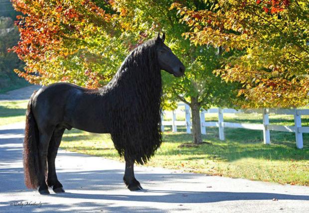 Nó có bộ lông đen bóng như mực, bờm xoăn dài, thuộc sở hữu của Stacy Nazario ở trang trại Pinnacle Friesians. Trang trại này là nơi lai giống ngựa Frieasian nổi tiếng, có cơ sở tại dãy núi Ozark, cao nguyên miền trung nước Mỹ.