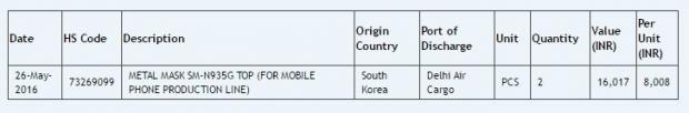 Một trang web chuyên xuất nhập khẩu của Ấn Độ có tên Zauba đã đăng tải thông tin về thiết bị có tên mã SM-N935G. Với tên mã này có thể đoán chắc về mẫu smartphone được nhắc đến là chiếc Galaxy S7 Edge. Nhắc lại một chút về tên mã các sản phẩm của nhà sản xuất Hàn Quốc, chúng ta có Galaxy Note 5 tên mã là SM-N920, Galaxy S7 là SM-G930.