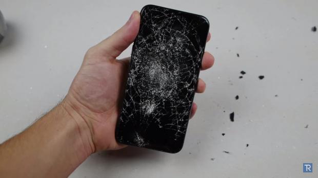 Sau 3 lần bị tác dụng lực nhẹ bởi búa tạ, màn hình của iPhone X đã bắt đầu bị vỡ.