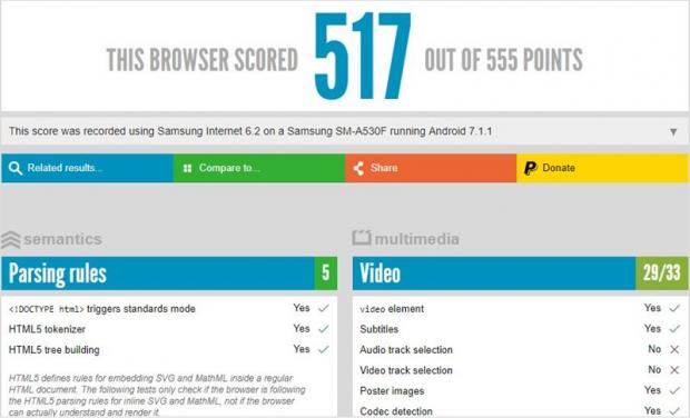 Galaxy A5 (2018) đã có mặt trên trang web HTML5 Test