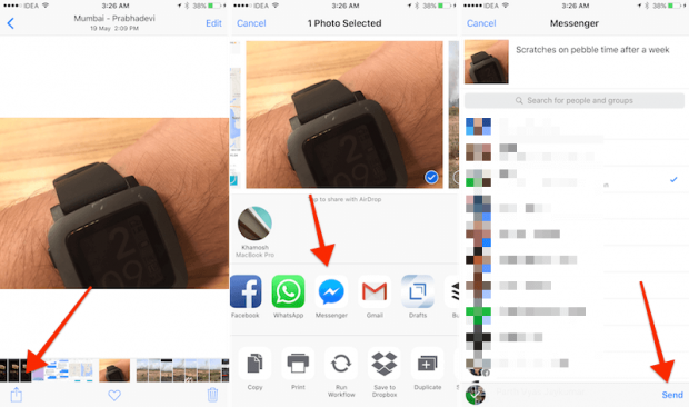 Đôi khi, bạn đang duyệt ảnh, video hay file bằng trình quản lý của điện thoại hay bất kỳ một ứng dụng nào khác, và bạn muốn gửi chúng cho bạn bè qua Facebook? Điều đó thật đơn giản. Bạn chỉ cần chọn dữ liệu cần gửi, chọn 'Share' (Chia sẻ) và tìm tới ứng dụng Messenger (nếu không nhìn thấy thì hãy tìm trong mục More phía cuối), sau đó chỉ cần nhập nội dung tin nhắn và gửi dữ liệu cho bạn bè.