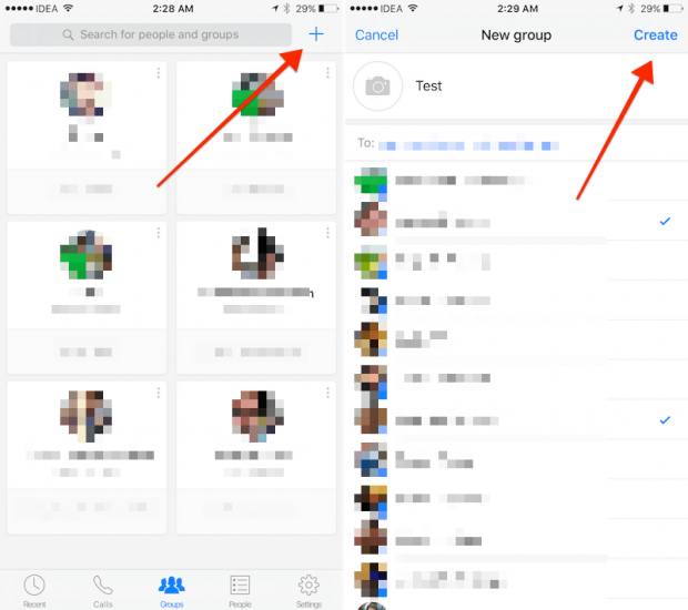 Việc này khá đơn giản, bạn chỉ cần đến tab Groups, nhấn vào biểu tượng dấu '+' ở góc trên bên phải, chọn người muốn thêm vào và đặt cho hội 'chém gió' đó một cái tên, hay thâm chí là một bức ảnh đại diện, giống như đang chat với 1 người vậy.