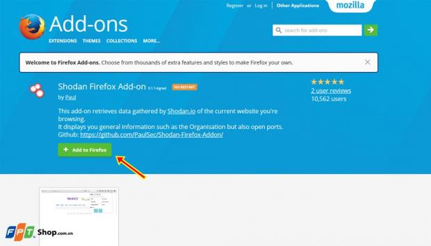 * Dành cho trình duyệt Firefox: https://addons.mozilla.org/en-US/firefox/addon/shodan-firefox-addon/