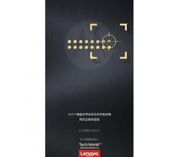 Teaser mới bị rò rỉ cho thấy Lenovo Moto Z có khả năng zoom quang học lên tới 10x. Khá là khó tin nên chuyên trang gsmarena có nhận định rằng rất có thể Lenovo sử dụng các module để làm điều này chứ không phải là camera chính. Trong bài thơ ngắn tiếng Trung đi kèm với teaser thì công ty đã không ngừng ca ngợi khả năng chụp ảnh của Moto Z: 'Bạn có thể chụp toàn bộ bầu trời đêm, cũng có thể bắt một ngôi sao. Bạn cũng có thể lấy toàn bộ biển... Moto với 16 thấu kính, khả năng zoom quang học 10x...'.