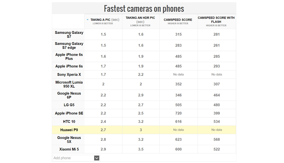 * Các thứ hạng còn lại lần lượt: Nexus 6P / iPhone SE / LG G5