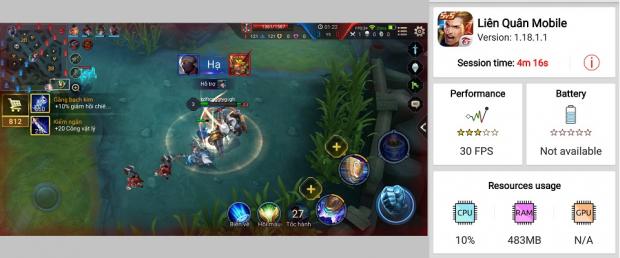 Tựa game tiếp theo được lựa chọn chính là Liên Quân Mobile, so về cấu hình thì Liên Quân nặng hơn khá nhiều so với Temple Run 2, và đây cũng là game online, do đó đòi hỏi kết nối mạng ổn định mới có thể trải nghiệm mượt mà.