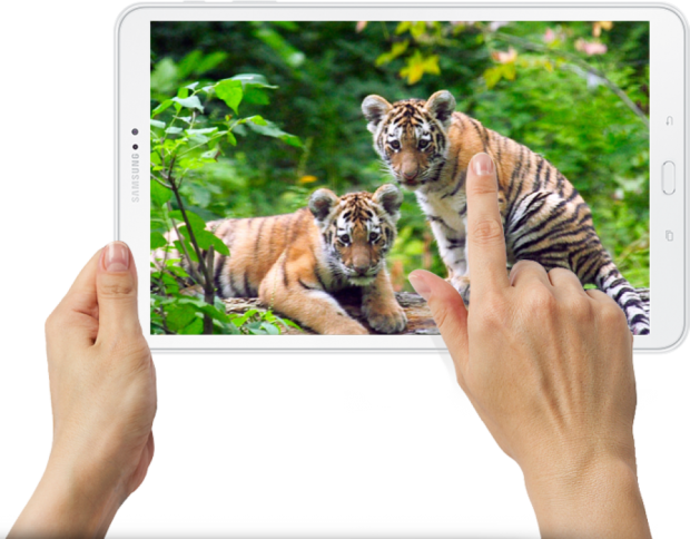 Samsung Galaxy Tab A 10” 2016 sở hữu màn hình 10,1 inch độ phân giải Full HD (1920 x 1080 pixel) với công nghệ hiển thị PLS độc quyền của Samsung cho hình ảnh sống động, chân thực, góc nhìn rộng và độ sáng cực cao. Với Galaxy Tab A 10” 2016, những tựa game đình đám, những bộ phim bom tấn hay những tấn bi kịch đẫm nước mắt sẽ đều được tái hiện một cách trọn vẹn. Những giờ phút giải trí đa phương tiện của bạn sẽ trở nên tuyệt vời hơn bao giờ hết.