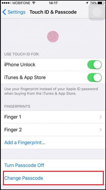 Bước 3: Chọn Change Passcode và tiến hành nhập lại mật khẩu cũ.
