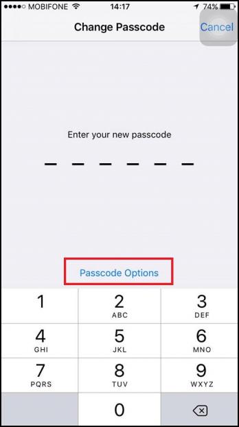 Bước 4: Tiếp tục chọn Passcode Options.