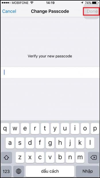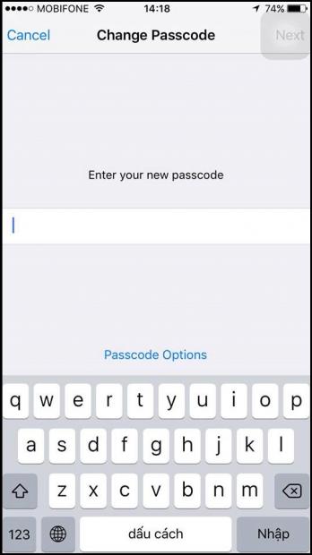 Bước 6: Khi chọn phần Custom Alphanumeric Code, bàn phím của iPhone ở phần nhập mật khẩu sẽ chuyển sang dạng bàn phím chữ thay cho dạng bàn phím số thông thường.
