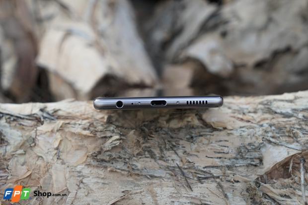 Cổng Type-C, jack 3.5mm, loa ngoài và mic ở cạnh dưới.
