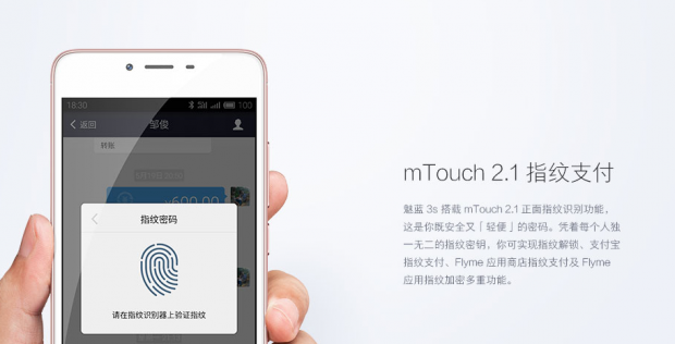 Ngoài việc thay đổi chất liệu vỏ, Meizu còn thêm cảm biến vân tay tích hợp vào phím Home của Meizu M3S. M3S sử dụng phần mềm vân tay do chính Meizu phát triển là mTouch 2.1, cho phép mở khóa điện thoại, thanh toán, đặt mã cho ứng dụng và một số tính năng khác. Dung lượng pin cũng là điểm nổi bật trên M3S với con số 3020 mAh.