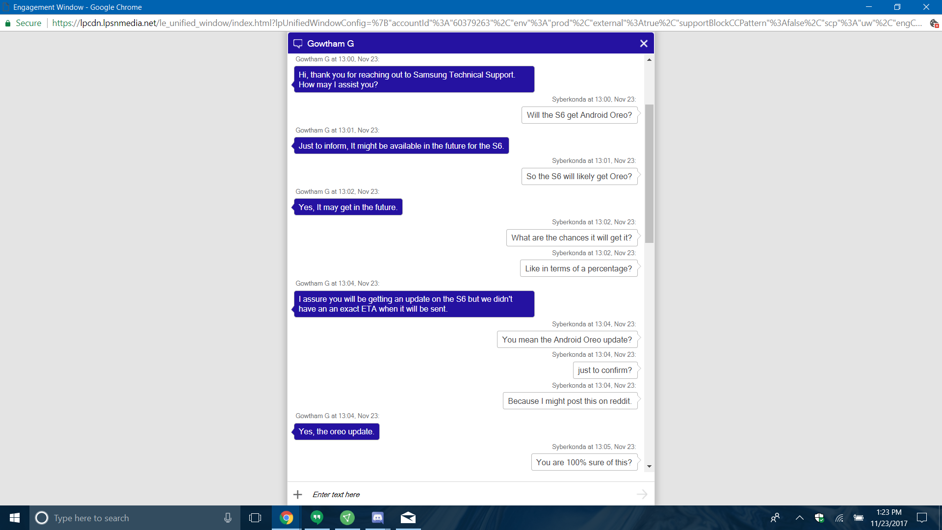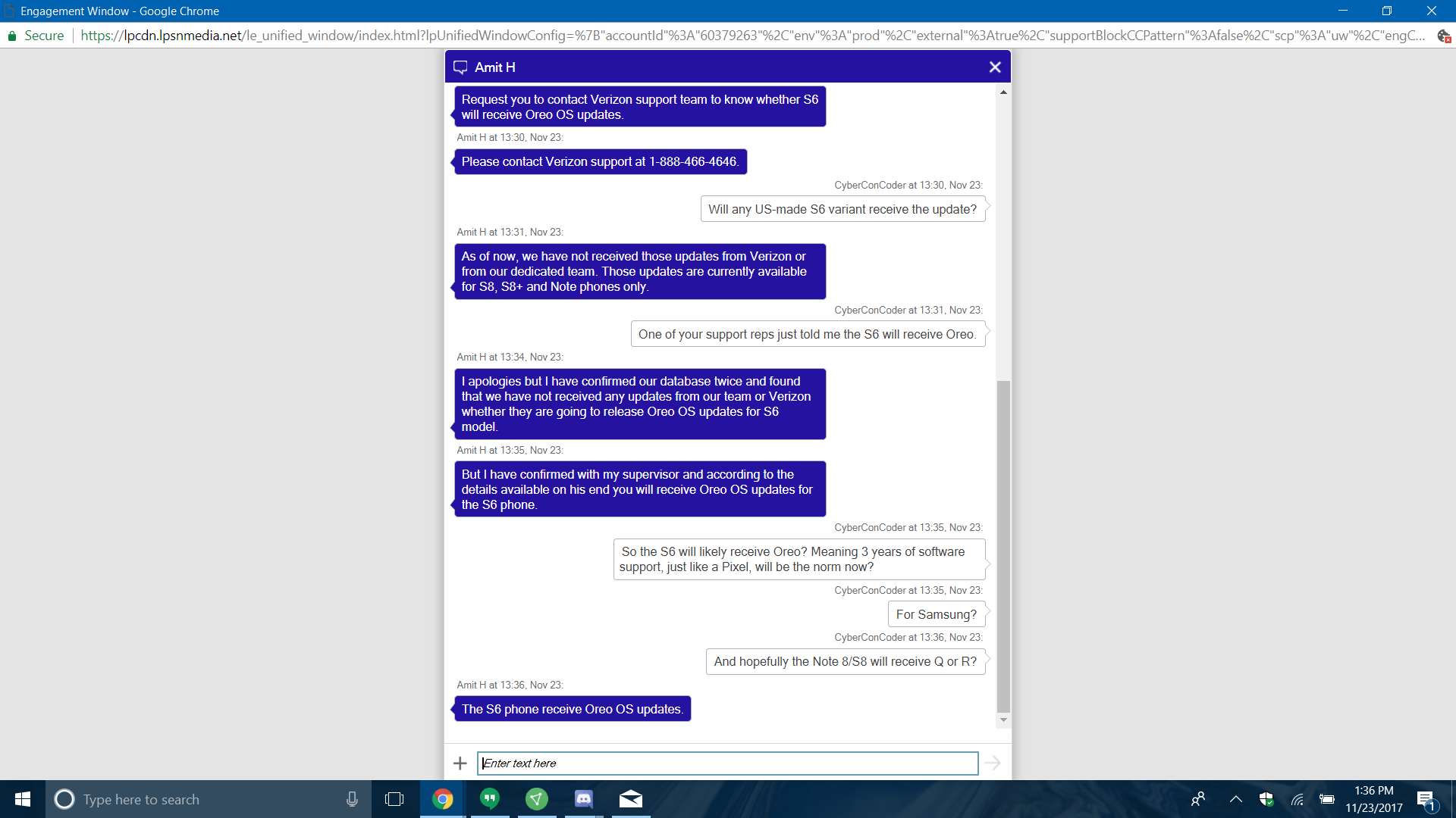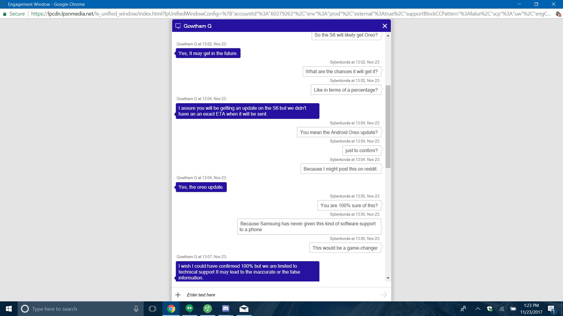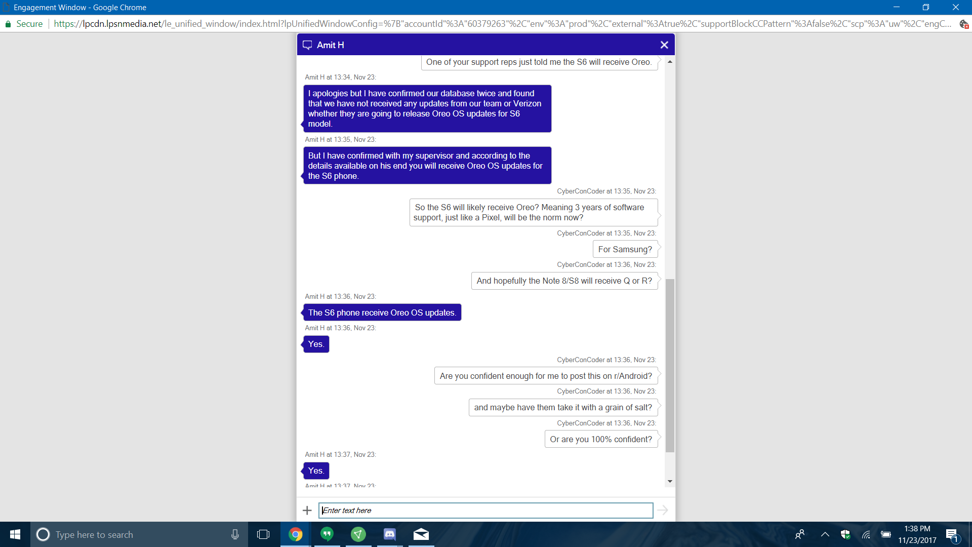 Thông tin này được người dùng Reddit chia sẻ, anh vừa chat với 4 nhân viên của Samsung và họ đều cho biết, bộ đôi Galaxy S6/ S6 edge sẽ đều được cập nhật lên hệ đi hành Android Nougat trong thời gian tới.