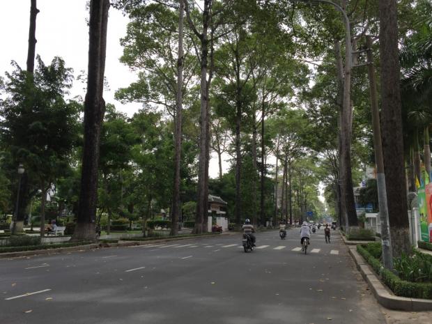 Chạy đến đường An Dương Vương thì thấy hàng cây sao đẹp quá, lại tấp xe vào lề làm ngay một tấm ảnh. Trong điều kiện ngược sáng, thuật toán HDR trên Galaxy S7 đã cho thấy sự vượt trội hơn so với thiết bị 2 năm tuổi đến từ Apple. Cụ thể, ở vùng trời, chi tiết của mây được Galaxy S7 giữ lại gần như toàn bộ, trong khi với iPhone 6, toàn bộ vùng trời bị cháy sáng. Ở những mảng tối, chi tiết từ ảnh của Galaxy S7 được thể hiện rất ấn tượng, còn iPhone 6 thì hầu như không thể thấy được gì.