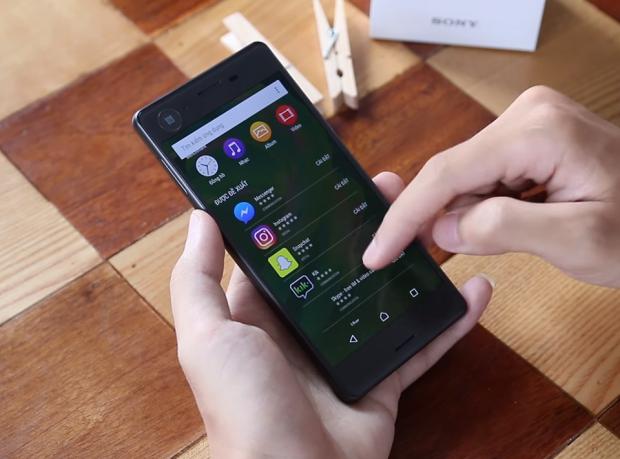 Ở màn hình chính, khi vuốt xuống sẽ ra khu vực tìm kiếm nhanh và gợi ý của máy, Sony sẽ cho bạn biết các phầm mềm, mạng xã hội nên cài như Facebook, Zalo, Snapchat, ... rất tiện dụng để đỡ tốn thời gian của người dùng tìm hiểu.
