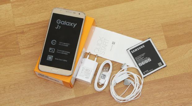Samsung Galaxy J7 là mẫu smartphone tầm trung của thương hiệu Hàn Quốc ra mắt vào giữa năm 2015. Máy được trang bị màn hình 5,5 inch độ phân giải chuẩn HD, vi xử lý 8 nhân Exynos 7580, đì cùng dung lượng RAM 1,5GB mang đến khả năng xử lý tốt mọi tác vụ, thực thi đa nhiệm mượt mà. Camera trước của Galaxy J7 có độ phân giải cao 5MP đi kèm đèn Flash LED, hỗ trợ hàng loạt tính năng chụp ảnh như chụp panorama, làm mịn ra, đồng thời có góc chụp rộng rất thích hợp cho việc chụp ảnh selfie theo nhóm với người thân, bạn bè.
