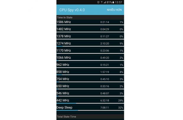 Có một thử nghiệm mà mình không thực hiện trong bài kiểm tra này đó chính là chế độ chờ. Nhưng thực nghiệm mà mình sử dụng cho thấy Galaxy S7 có chế độ chờ rất tốt, tiêu thụ ít năng lượng. Kiểm tra bằng ứng dụng CPU Spy thì dễ thấy Samsung tích hợp chế độ Power Saving trong nhiều ứng dụng thậm chí là cả Game Launcher.