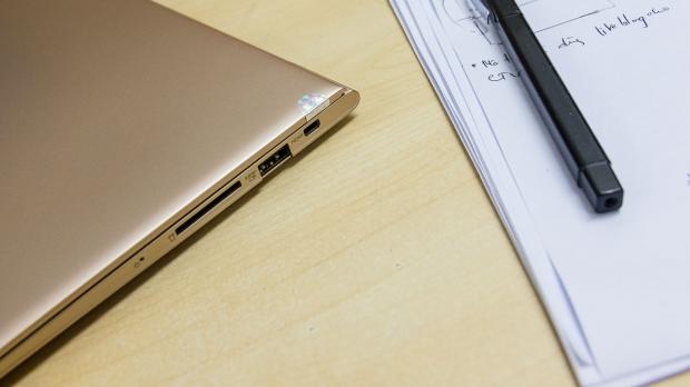 Cạnh phải máy bao gồm đầu đọc thẻ nhớ, USB 3.0 công nghệ sạc khi tắt máy cho thiết bị di động và 1 cổng micro HDMI.