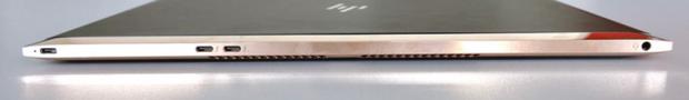 Không phải cái gì 'quá' cũng tốt và Spectre 13 cũng chứng minh điều này. Do 'quá mỏng' nên nó có khá ít cổng kết nổi, chỉ có 3 USB Type - C và 1 jack tai nghe 3,5 mm. Trong đó 2 cổng USB Type - C có hỗ trợ Thunderbolt 3 và cả 3 cổng đều có thể đóng vai trò như cổng nguồn tức là cắm sạc vào vị trí nào cũng được.