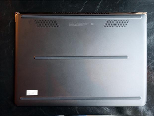 Phía bên dưới tất cả các chi tiết khác từ bàn phím, loa, touchpad đều được sắp xếp rất hợp lý. Các chi tiết này cũng được phối màu tương tự bên ngoài laptop. Ví dụ như ở các phím bấm cơ bản, thông tin (chữ cái, số) và phần viền dưới đều được sơn màu đồng trong khi mặt trên thì lại được sơn màu bạc tro. Chất lượng bàn phím thì khá ổn, độ nảy cao và khoảng cách hợp lý. Duy chỉ có TouchPad thì hơi bé một chút. Phần dải loa stereo được làm họa tiết đối xứng rất ấn tượng và ở bên dưới có ghi thông tin là do Bang & Olufsen (một hãng âm thanh của Đan Mạch) hợp tác sản xuất.