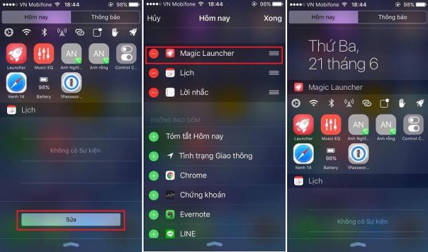 Cuối cùng, các bạn vuốt từ trên xuống để mở thanh Notification. Bấm vào Sửa và kéo Magic Launcher lên đầu để vuốt thanh thông báo xuống thao tác được ngay.
