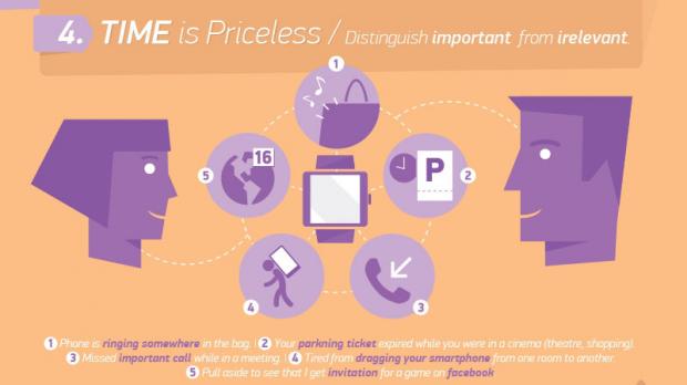 Tất cả smartwatch đều có tính năng đẩy thông báo từ smartphone. Nếu như trên smartphone, mỗi lần xem tin nhắn, thông báo, bạn phải rút điện thoại ra, mở khóa màn hình rồi mới xem được. Mọi chuyện sẽ đơn giản hơn rất nhiều trên smartwatch. Tất cả thao tác như đọc và gởi email thậm chí cả gọi hay nhận cuộc gọi, chỉ cần liếc sang cổ tay bạn là xong.