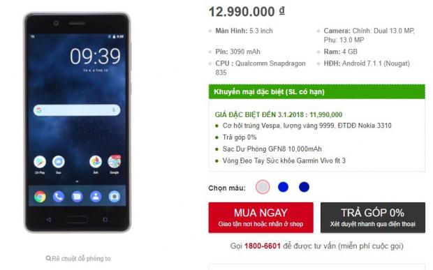 Cụ thể, Nokia 8 hiện đang được hạ giá từ 12.99 triệu xuống còn 11.99 triệu đồng, giảm tới 1 triệu đồng. Lưu ý chương trình giảm giá này chỉ áp dụng tới ngày 3/1, vì vậy bạn cần phải nhanh tay lên nhé.