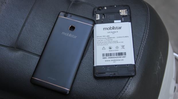 Ngoài ra, Mobiistar Zumbo S (2017) còn có thể tháo được nắp lưng để thay SIM và thẻ nhớ, bạn cũng thấy một viên pin khá to lộ ra ngoài, tuy nhiên không thể tháo ra được.