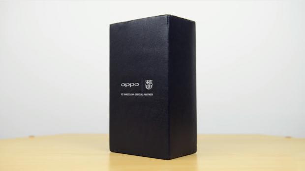 Ngay từ vỏ hộp, chúng ta đã cảm nhận được sự sang trọng của phiên bản F1 Plus FC Barcelona với chất liệu giả da cho cảm giác cầm nắm khá mềm mại, dễ chịu. Mặt trước hộp là logo OPPO, FC Barcelona và dòng chữ FC Barcelona Offical Partner (Đối tác chính thức của Barcelona).