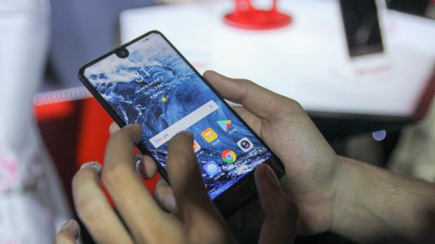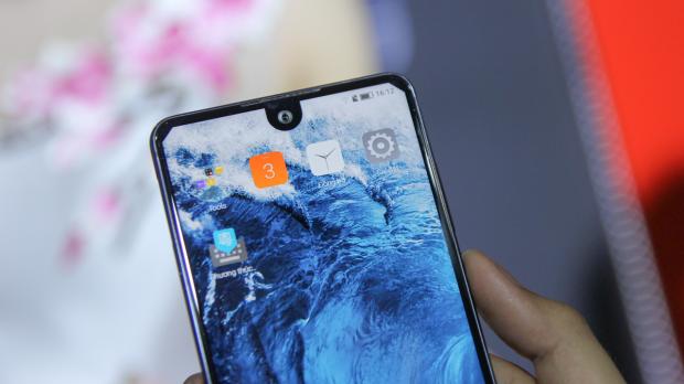 Màn hình của Sharp Aquos S2 chính là điều đặc biệt cho chiếc máy này. Giống như Essential Phone, phần viền được làm cực kì mỏng và khoét vị trí chừa cho camera trước nhưng thêm vào đó. Sharp còn vát chéo hai góc trên của màn hình.