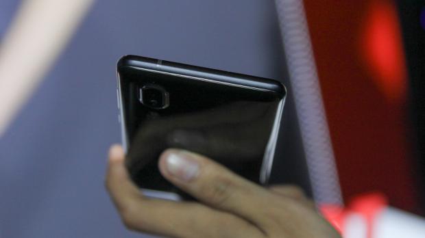 Máy có thiết kế từ bộ khung kim loại cứng cáp cùng mặt lưng kính bo cong mềm mại bóng bẩy. Phiên bản màu đen cực kì dễ bám vân tay, do ở bàn trải nghiệm đã nhiều người cầm qua nên trông máy khá bẩn, anh em thông cảm nhé.