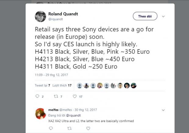 Cụ thể, một nguồn tin rất quen thuộc với chúng ta đó là tài khoản Twitter Roland Quandt, mới đây anh đã chia sẻ về giá bán của bộ 3 smartphone Sony mới.