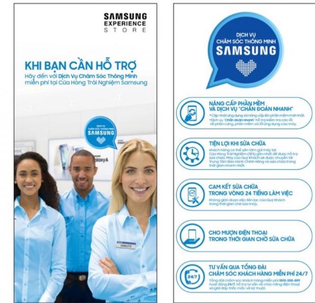 Dịch vụ chăm sóc thông minh đang có mặt tại các Cửa Hàng Trải Nghiệm của Samsung trên toàn quốc với độ ngũ Kỹ thuật viên chuyên nghiệp. Khi đến các Cửa Hàng Trải Nghiệm, người dùng có thể nâng cấp phần mềm và sử dụng dịch vụ “Chẩn đoán nhanh” – hỗ trợ kiểm tra các lỗi về phần cứng, phần mềm và lỗi ứng dụng của máy.