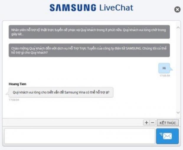 Dịch vụ Hỗ trợ trực tuyến là kênh hỗ trợ qua Internet ngoài tùy chọn gọi điện thoại nhằm giúp kết nối khách hàng với Trung tâm hỗ trợ, nhằm giải đáp mọi thắc mắc về sản phẩm và dịch vụ của Samsung. Để được hỗ trợ, bạn chỉ cần truy cập vào trang live chat hoặc vào trang hỗ trợ của Samsung và chọn “Hỗ trợ trực tuyến”.