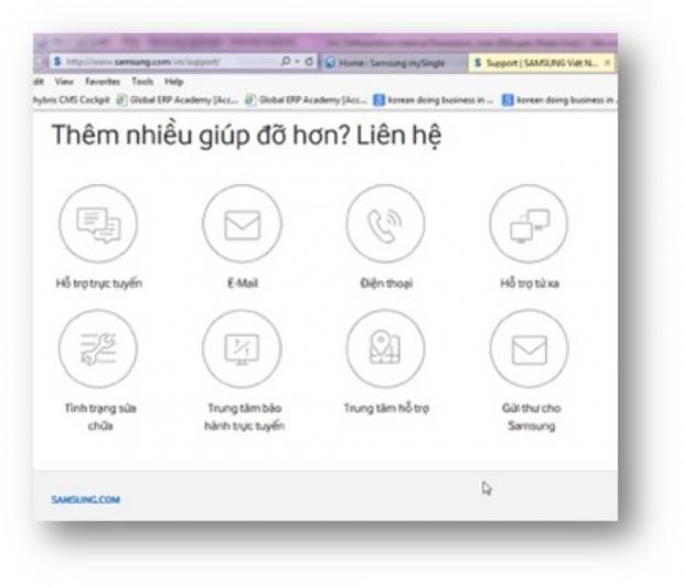 - Gọi tới Tổng Đài Hỗ Trợ 24/7 miễn phí của Samsung