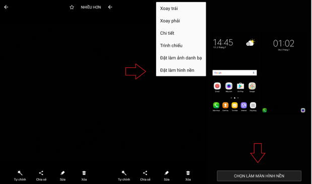 Do sử dụng màn hình Super AMOLED nên các hình nền đen sẽ thật sự rất hữu ích đối với Galaxy A9 Pro trong việc tiết kiệm pin. Để có các hình nền đen thì đơn giản nhất là bạn có thể tìm trên mạng hoặc tự tạo ra bằng cách lấy tay che kín phần camera và chụp một bức ảnh. Trong bài mình sử dụng cách thứ 2. Và cuối các bạn cài đặt nó làm hình nền cho máy như trong ảnh dưới đây.