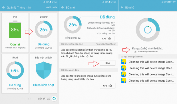Samsung tích hợp lên Galaxy A9 Pro một công cụ rất tuyệt vời để giải quyết vấn đề này. Việc dọn dẹp không chỉ giúp máy hoạt động tốt hơn mà còn giúp hệ thống chạy ổn định và tiết kiệm pin hơn. Công cụ này sẽ được tìm thấy trong phần 'Quản lý thông minh' ở Cài đặt.