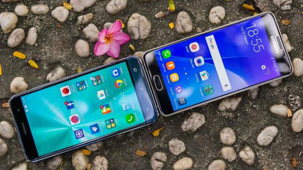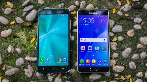 Phiên bản Zenfone 3 mà mình đang cầm trên tay có kích thước 5,2 inch, do đó nó có cùng kích thước màn hình với Galaxy A5 (6). Nhưng khi đặt cạnh nhau thì chiếc Galaxy A5 (6) nhờ được tối ưu kích thước tốt với viền màn hình mỏng, nên chiếc máy của Samsung trông thon gọn hơn so với Zenfone 3.