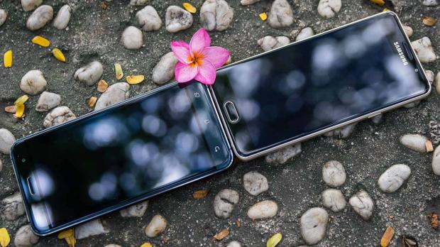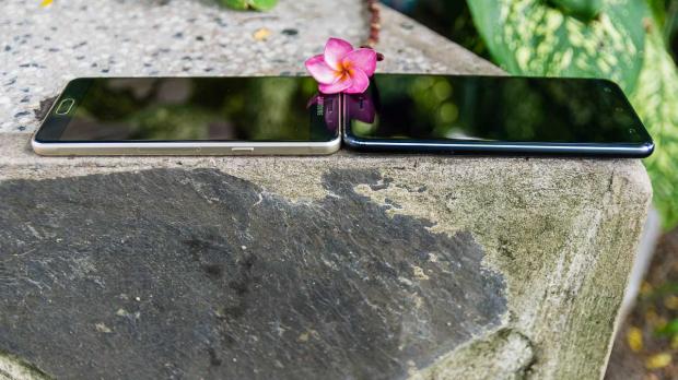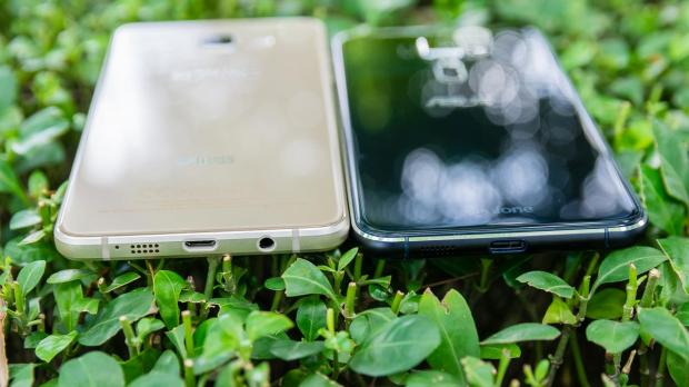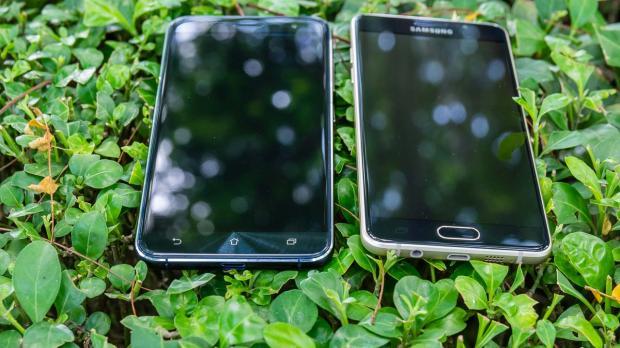 Tuy nhiên, kích thước nhỏ gọn của Galaxy A5 (6) lại làm cho máy khá nặng nên khi cầm trên tay hai máy mình cảm thấy Zenfone 3 nhẹ hơn dù cả hai máy đều có trọng lượng 155 gam. Ngoài ra, cả Samsung và Asus đều gia công rất tốt phần tiếp giáp giữa mặt kính và khung viền khi nó được mài cong 2,5D giúp các thao tác vuốt, chạm ở cạnh viền mượt mà hơn.