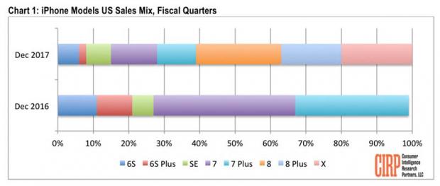 Báo cáo của CIRP chỉ ra, từ tháng 10 đến tháng 12 năm 2017, iPhone 7 và iPhone 7 Plus chiếm khoảng một phần tư doanh số iPhone tại Mỹ. Tỷ lệ của iPhone 6s và 6s Plus là 8%. iPhone SE đạt mức tương tự iPhone 6s trong cùng kỳ mặc dù không được làm mới phần cứng. Hiện tại, đã xuất hiện nhiều tin đồn dự báo iPhone SE 2 sẽ ra mắt trong năm 2018.