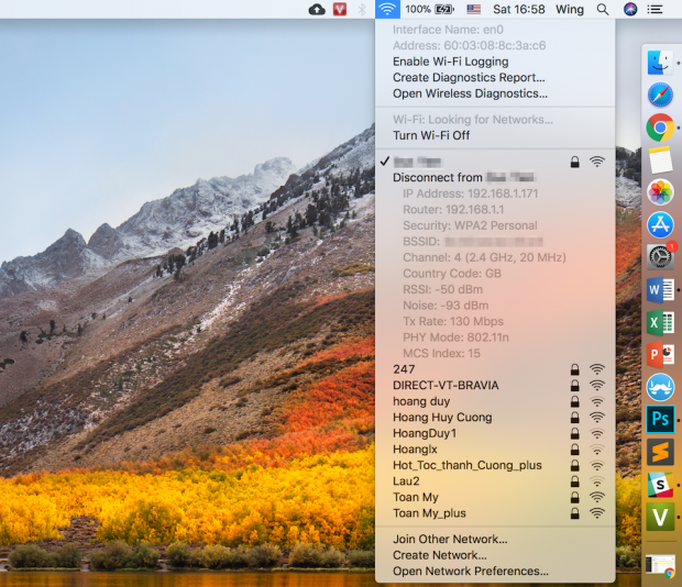 Người dùng chỉ việc giữ phím Option và nhấn biểu tượng Wifi để xem nhanh thông tin mạng.