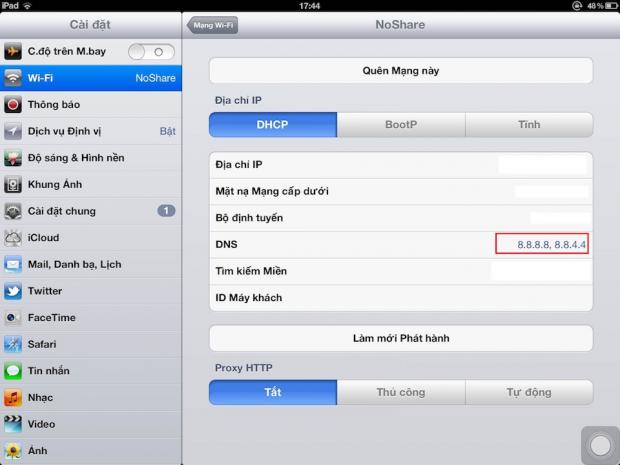 Để đổi địa chỉ DNS trên iOS, bạn hãy vào Cài đặt > mạng Wifi > nhấn vào biểu tượng chữ i bên cạnh mạng Wifi đang kết nối > DNS và nhập '8.8.8.8, 8.8.4.4'. Thực chất, đây là địa chỉ DNS của Google nên bạn hoàn toàn có thể yên tâm về tính bảo mật khi kết nối.