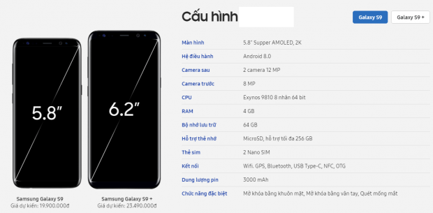 Được biết giá bán dự kiến của Samsung Galaxy S9 sẽ là 19.990.000đ và 23.490.000đ cho Galaxy S9+.