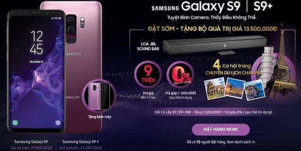 Tại hệ thống siêu thị , ngay bây giờ bạn đã có thể đặt hàng trước, ngày giao hàng và lên kệ dự kiến từ 19/3.Giá bán dự kiến của Galaxy S9 là 19.9 triệu đồng, của Galaxy S9+ là 23.49 triệu đồng.