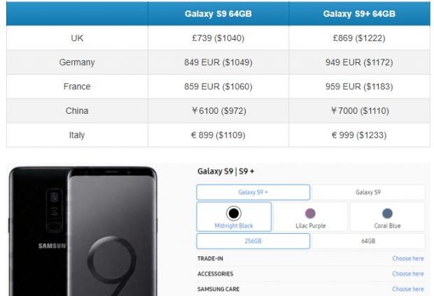 Theo đó, giá bán của Galaxy S9 tại Mỹ là 720 - 800 USD (16.4 - 18.2 triệu đồng), giá bán Galaxy S9+ là 840 – 930 USD (19.1 – 21.1 triệu đồng).