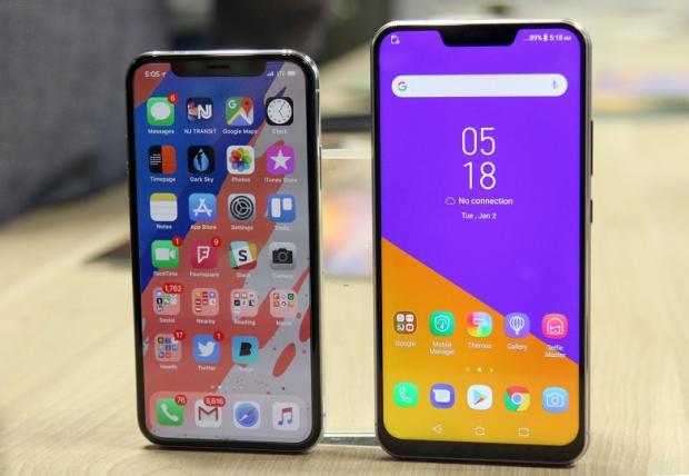 Hình ảnh chiếc điện thoại Zenfone 5 đứng cạnh Apple iPhone X