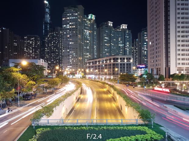 Tuy nhiên trong điều kiện ánh sáng mạnh khiến cho bức ảnh thừa sáng, khẩu độ f/2.4 trở nên có ích hơn. Các bức ảnh chụp bằng khẩu độ này cho thấy sự điều chỉnh ánh sáng phù hợp hơn so với khẩu độ f/.15 giúp tổng thể bức ảnh có ánh sáng hài hòa hơn, không bị cháy sáng và mất chi tiết. Điều này thực sự hữu ích khi người dùng sử dụng chế độ chuyên nghiệp để chụp ảnh phơi sáng. Bạn đọc sẽ thấy rõ điều này trong loạt ảnh phơi sáng dưới đây.