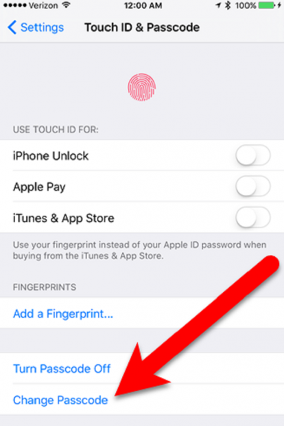 Tại màn hình “Touch ID & Passcode”, các bạn chọn “Change Passcode”.