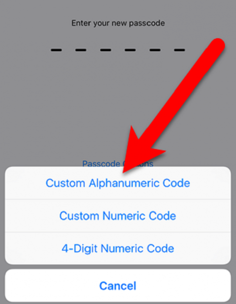 Máy sẽ hiển thị cho bạn ba tùy chọn về mật khẩu như: “4-Digit Numeric” (mật khẩu bao gồm 4 con số), “Custom Numeric Code” (mật khẩu chỉ bao gồm các con số nhưng độ dài lớn hơn), và cuối cùng là “Custom Alphanumeric Code” (mật khẩu kết hợp cả chữ và số). Các bạn lựa chọn “Custom Alphanumeric Code”.