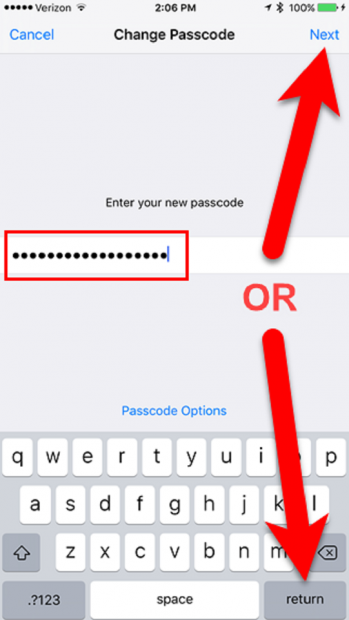 Sau khi nhập thành công mật khẩu cũ, máy sẽ cho phép bạn chọn một mật khẩu mới. Tuy nhiên, bạn cần lưu ý rằng trong giao diện này sẽ xuất hiện tùy chọn “Passcode Options”. Bạn hãy chọn “Passcode Options” để tối ưu hóa mật khẩu.